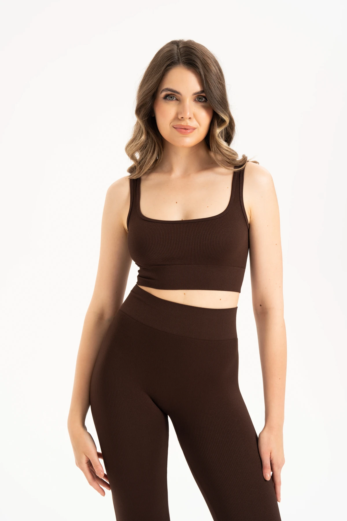 Fitilli dokusu, kalın askıları ve dikişsiz spor örgüsü ile antrenmanlarda